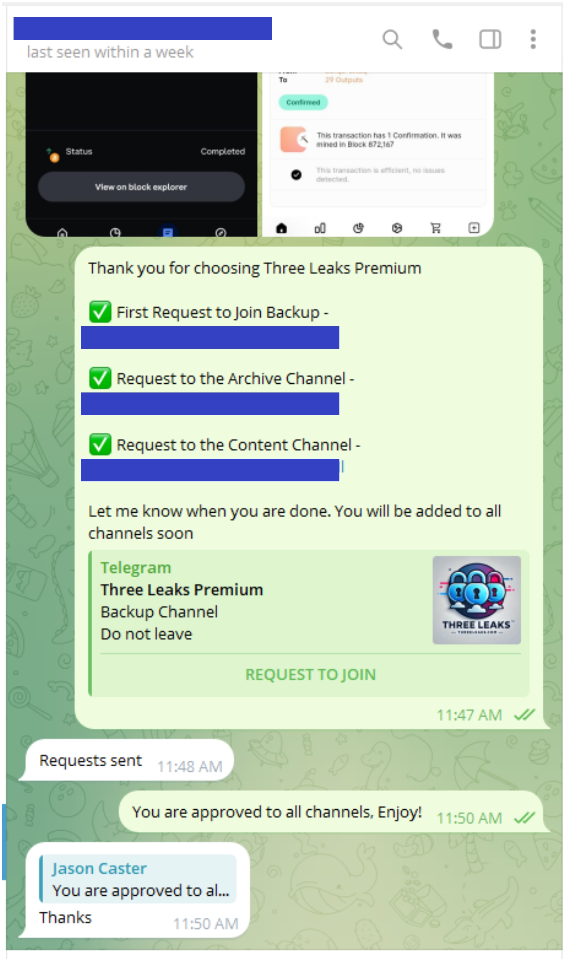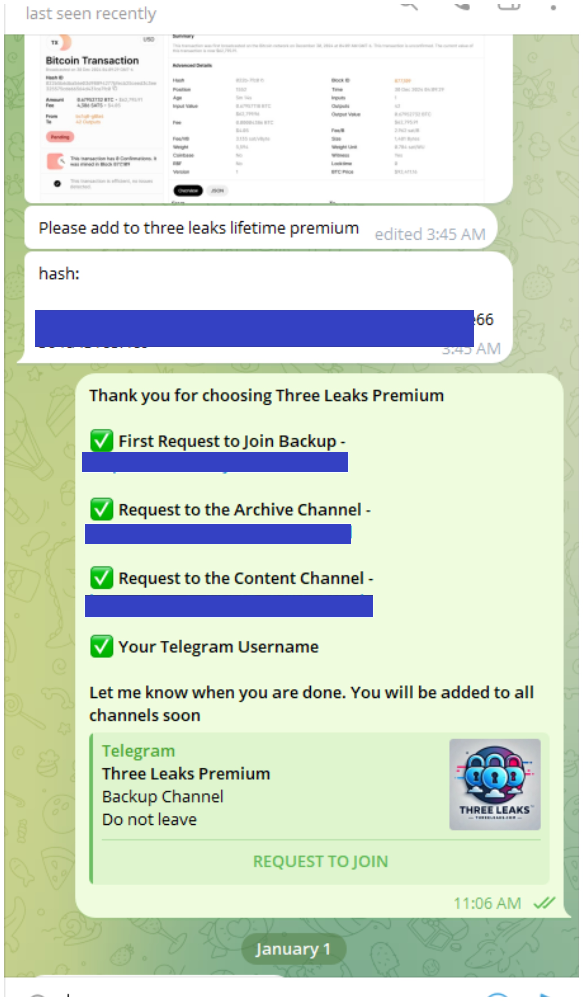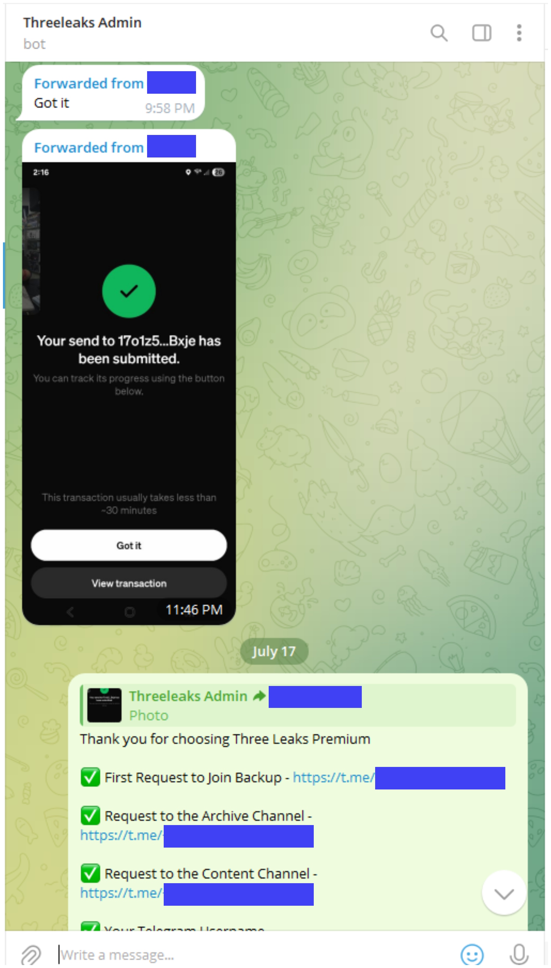 β We primarily accept cryptocurrency payments. Non-crypto payment methods are available only for the Three Leaks Premium (Lifetime) channel membership.