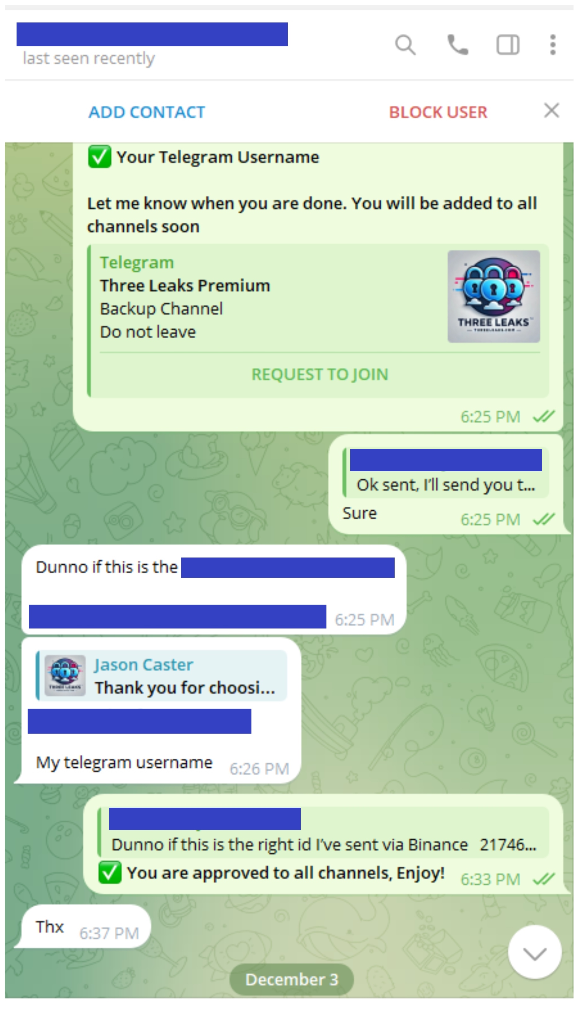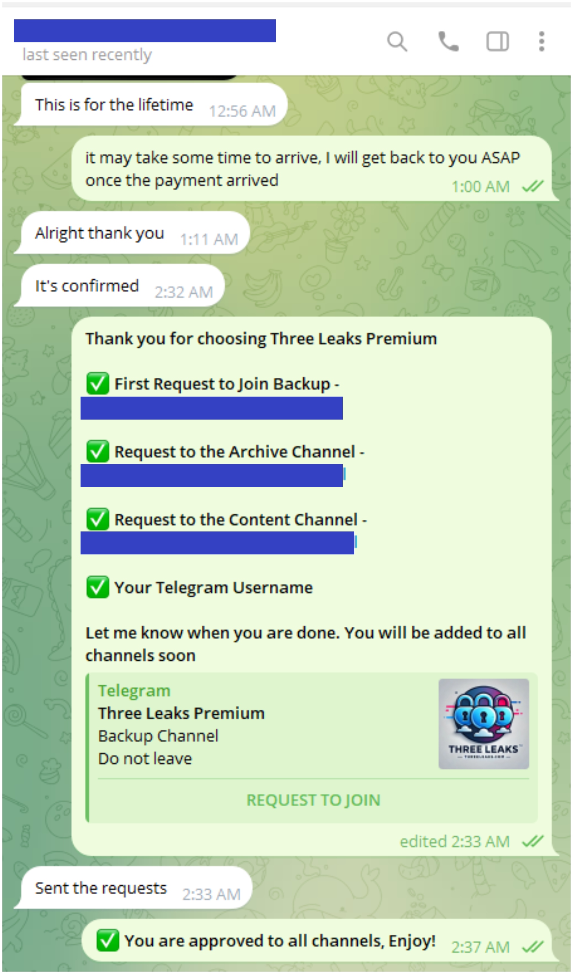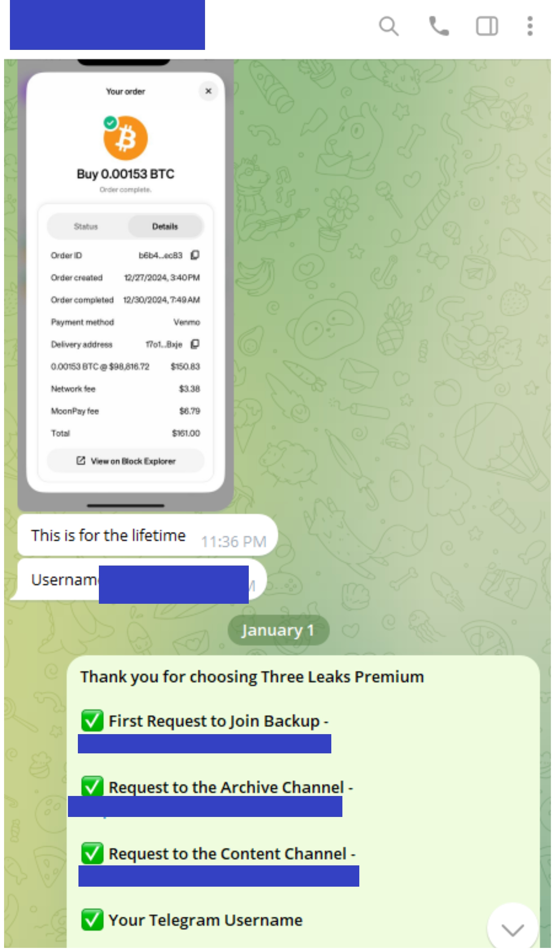 β We primarily accept cryptocurrency payments. Non-crypto payment methods are available only for the Three Leaks Premium (Lifetime) channel membership.