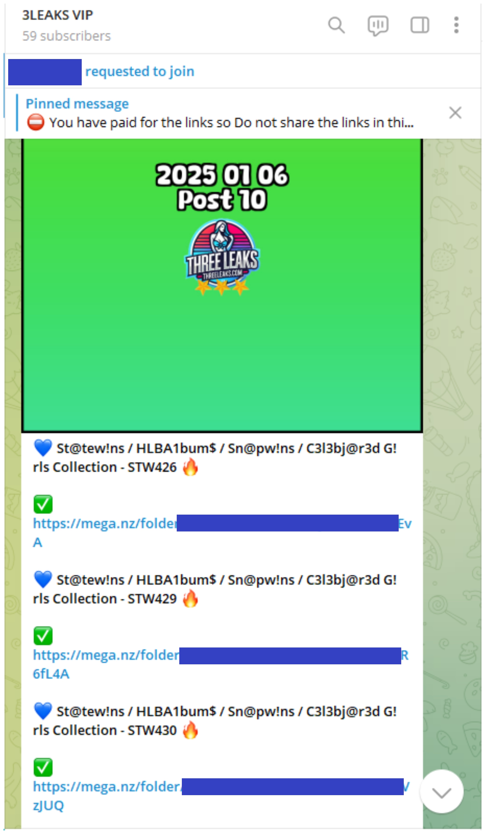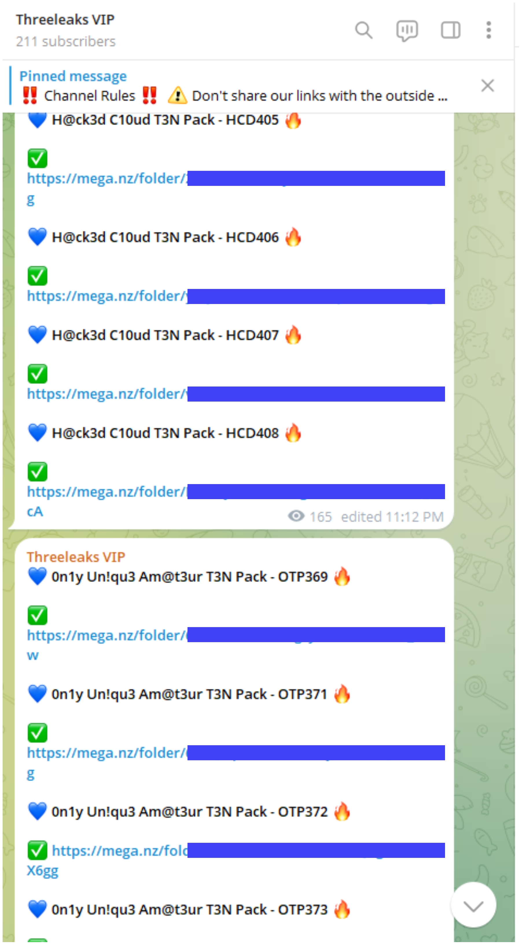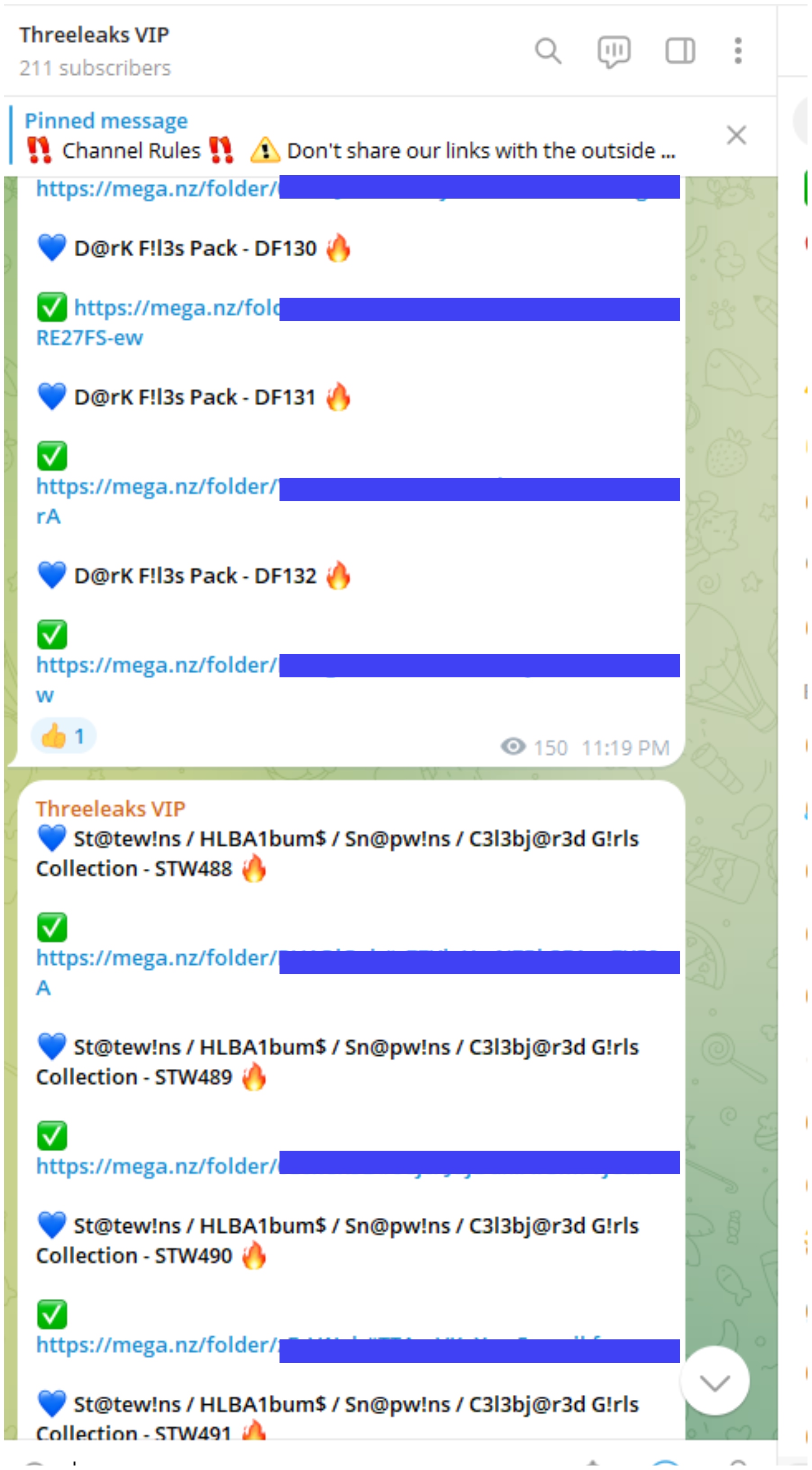 We also provide new content for the categories below on a premium Telegram channel daily.